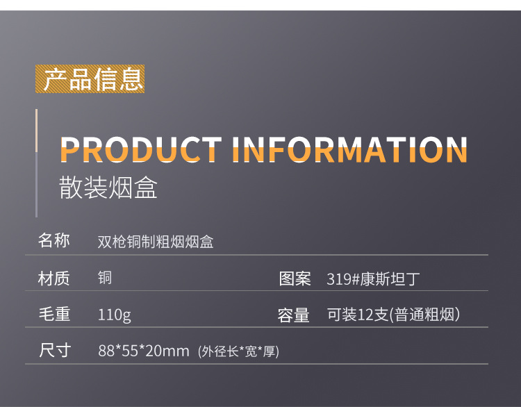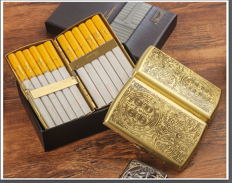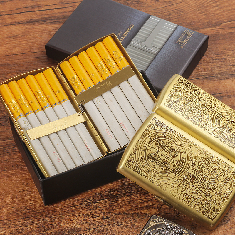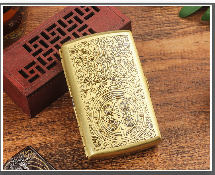 Double Gun Cigarette Case 12 Pack Constantine Vintage Copper Metal Cigarette Clip Creative Personality Male and Female Cigarette Box