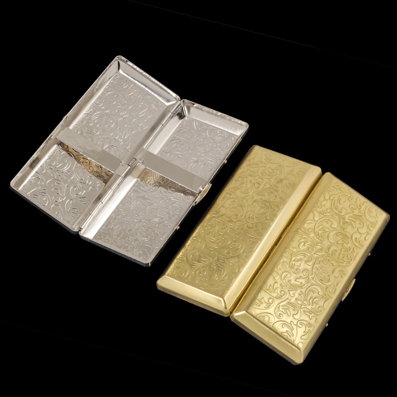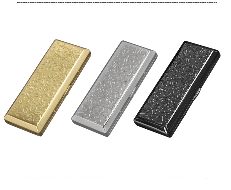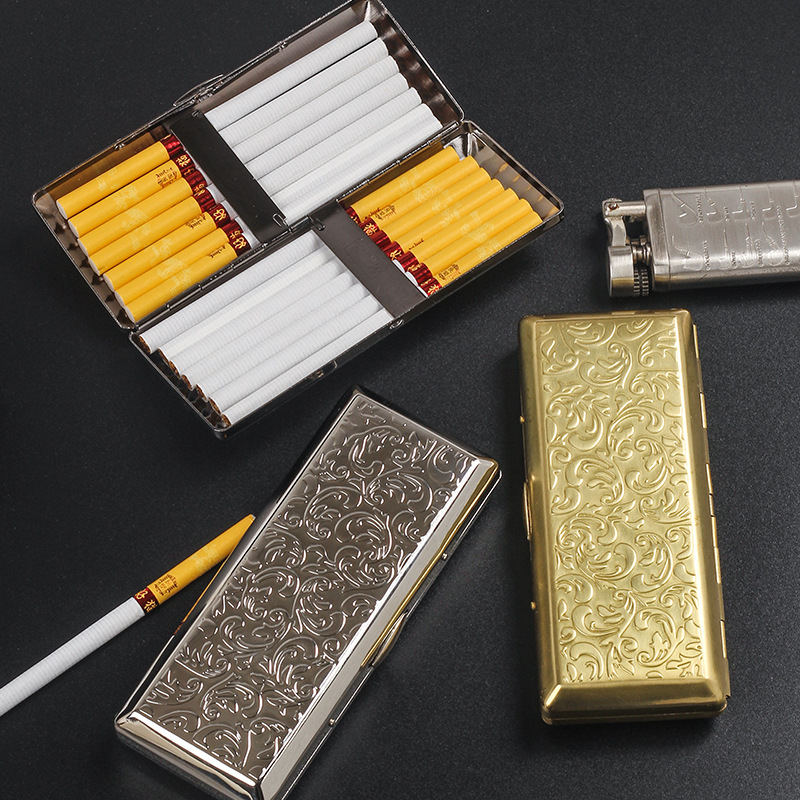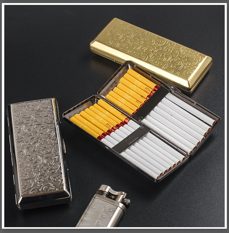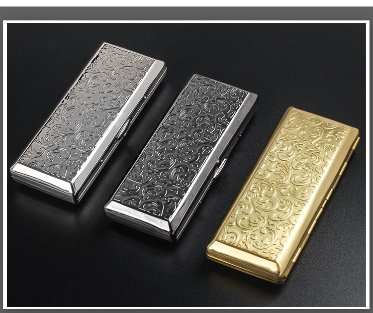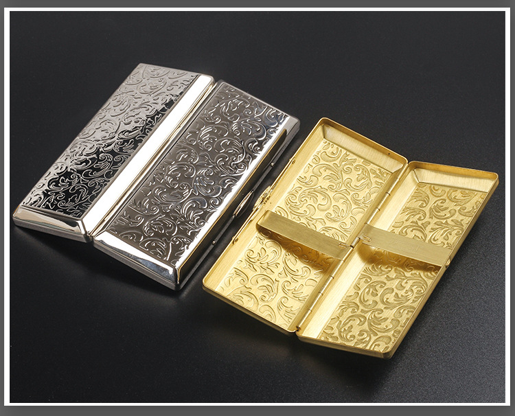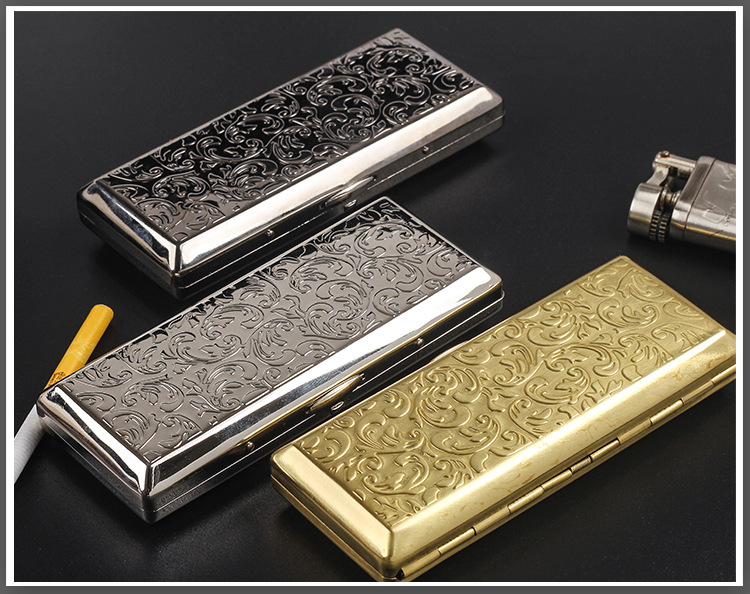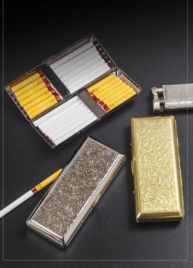 Double-gun fine cigarette case 14 sticks long Tang grass pattern men's and women's fine cigarette portable metal compact cigarette clip storage box