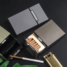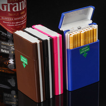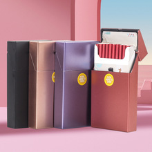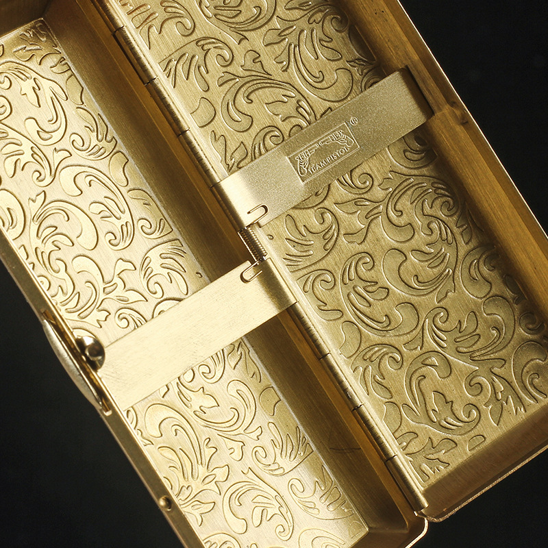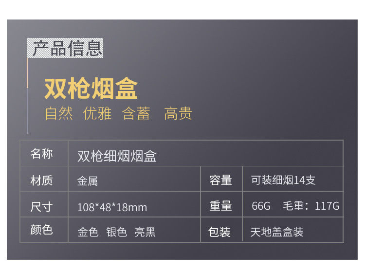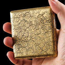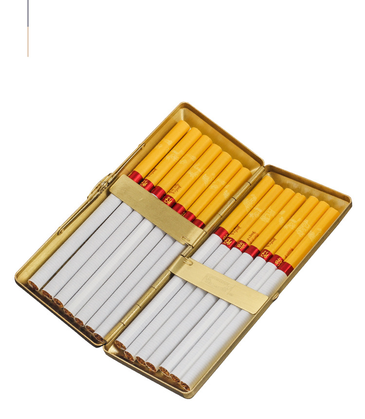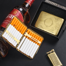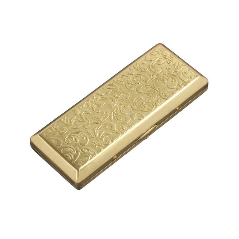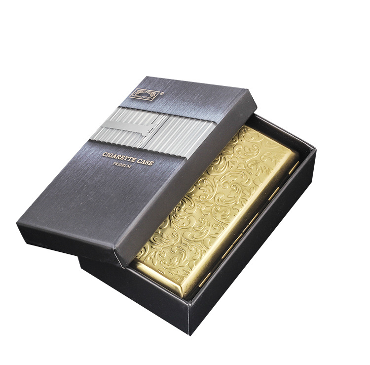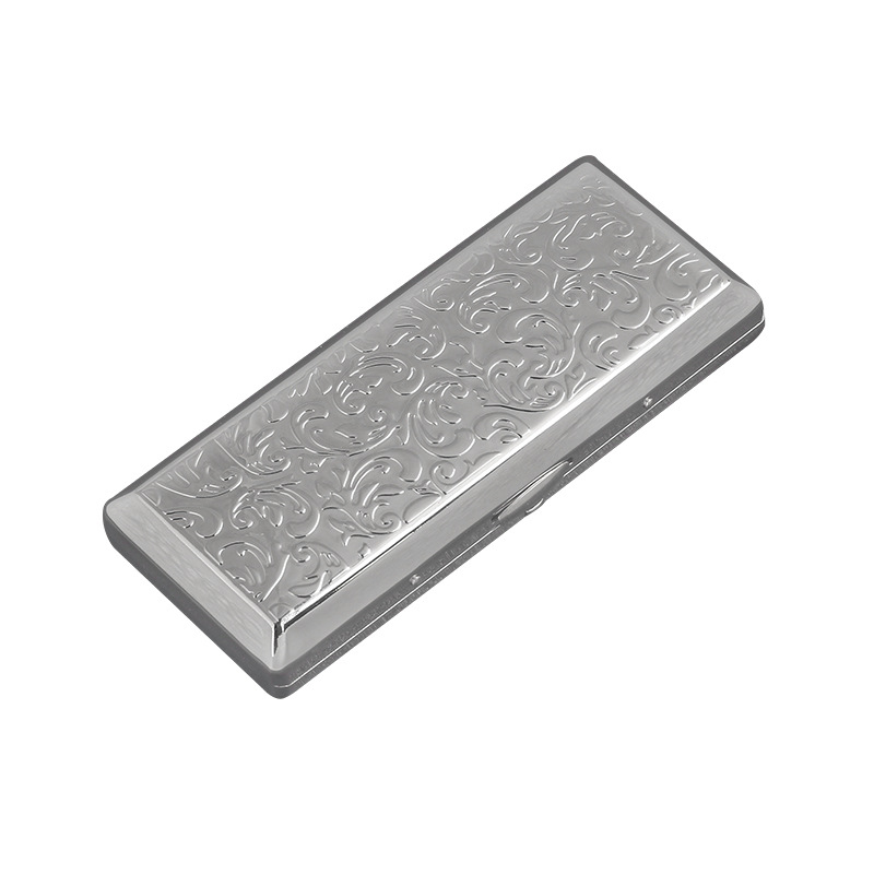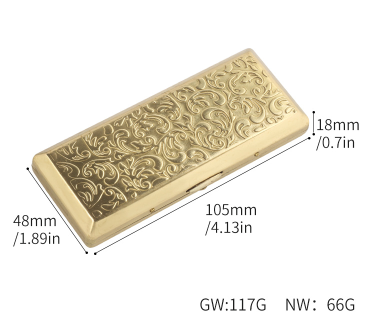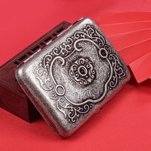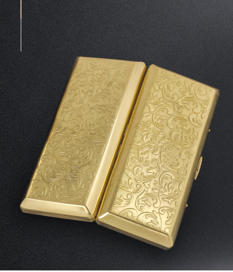 Double-gun fine cigarette case 14 sticks long Tang grass pattern men's and women's fine cigarette portable metal compact cigarette clip storage box