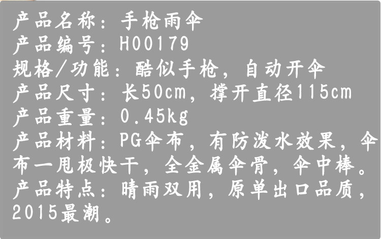 Western gun umbrella sunny umbrella two fold umbrella personality fashion gift umbrella folding umbrella creative umbrella automatic umbrella