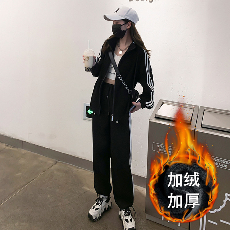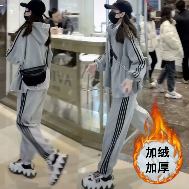 Loose Korean version of student sportswear set women's autumn and winter cotton plus size fashion slimming running casual two-piece set