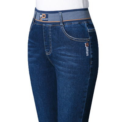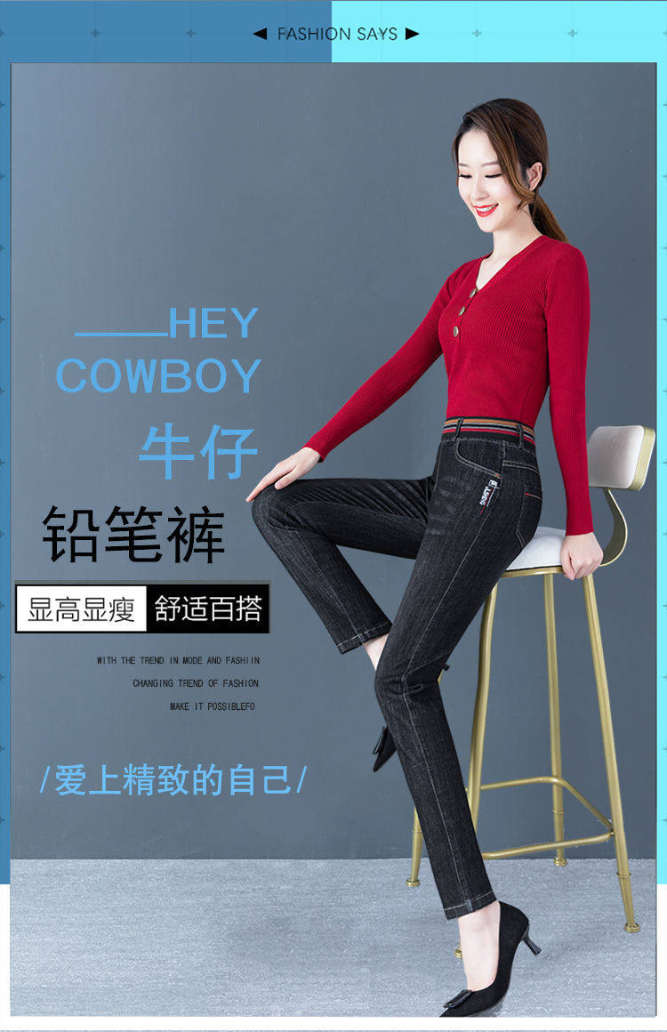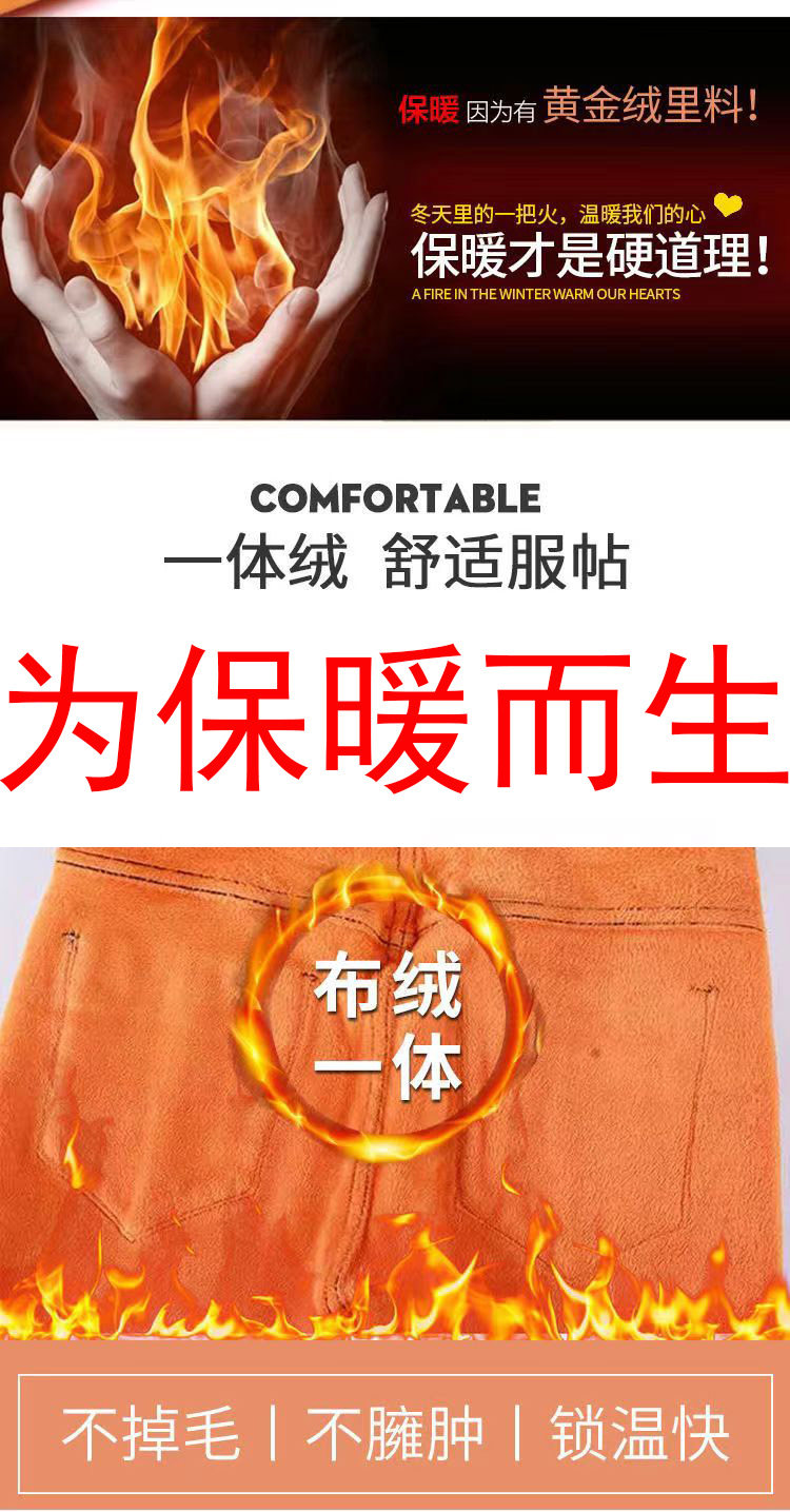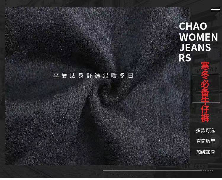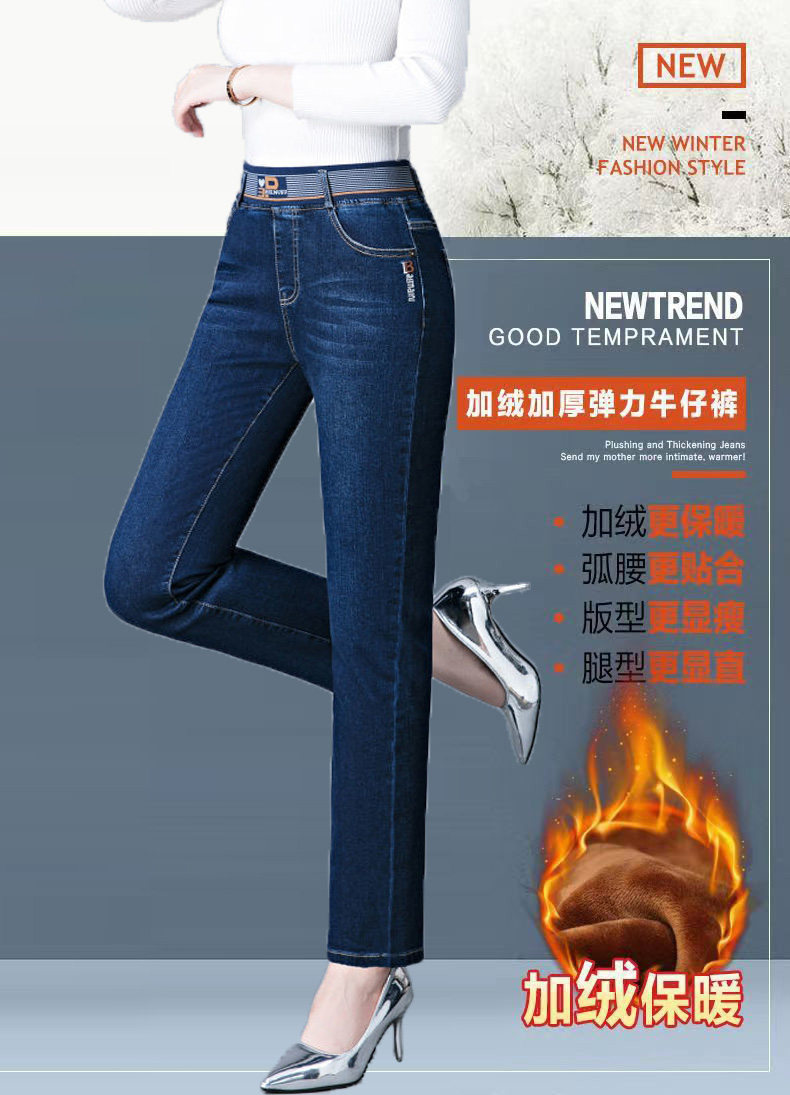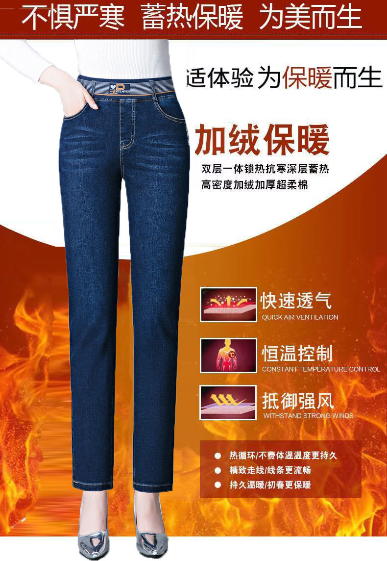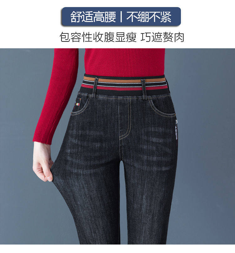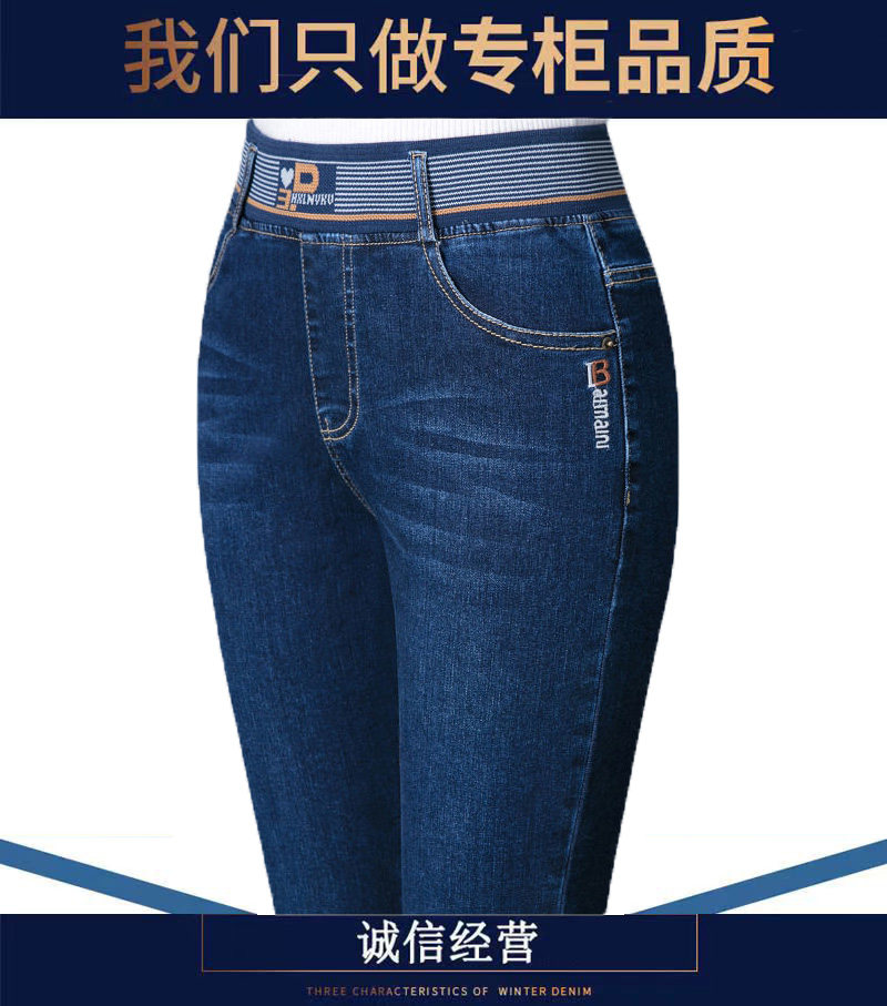 Fleece padded high-waisted jeans, women's winter straight stretch elastic waist, slim slim skinny plus-size loose long pants