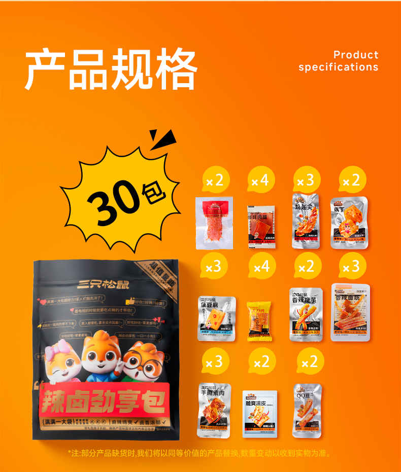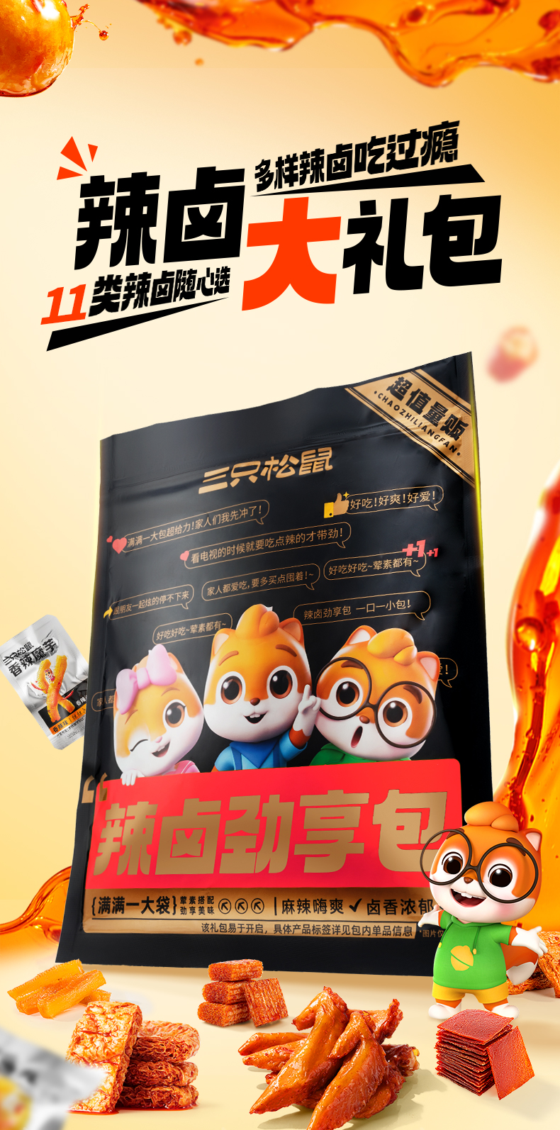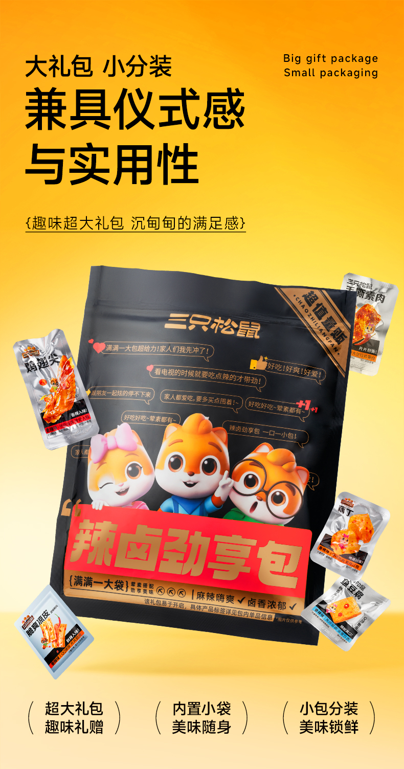 100 supplements [three squirrels _ spicy marinated gift pack] snack gift package whole box of marinated meat casual supper