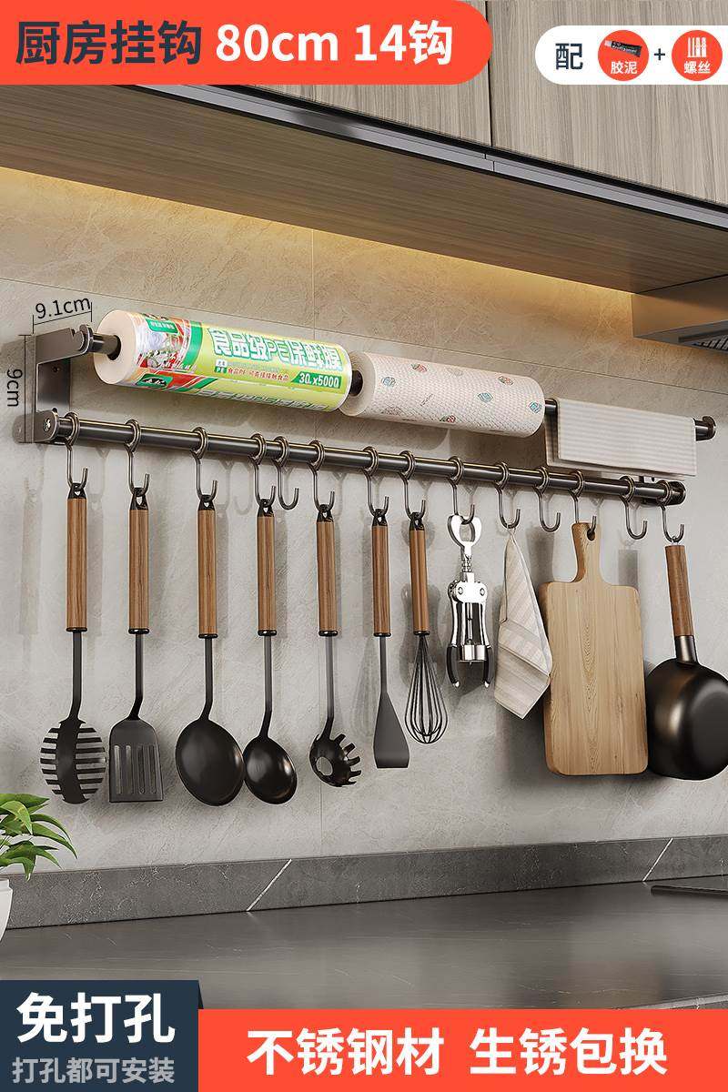 Japan KGL kitchen hook rack, spatula, spoon, wall hanging, non-perforated plastic wrap, paper towel pendant, hanging rail, shelf