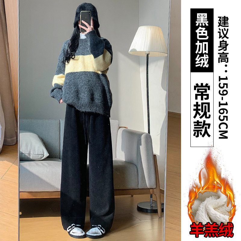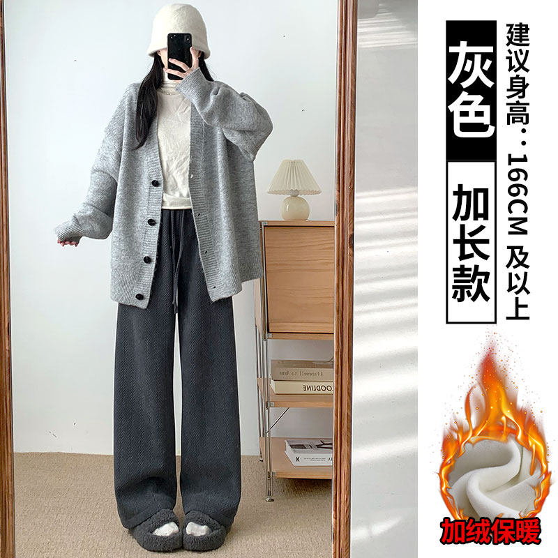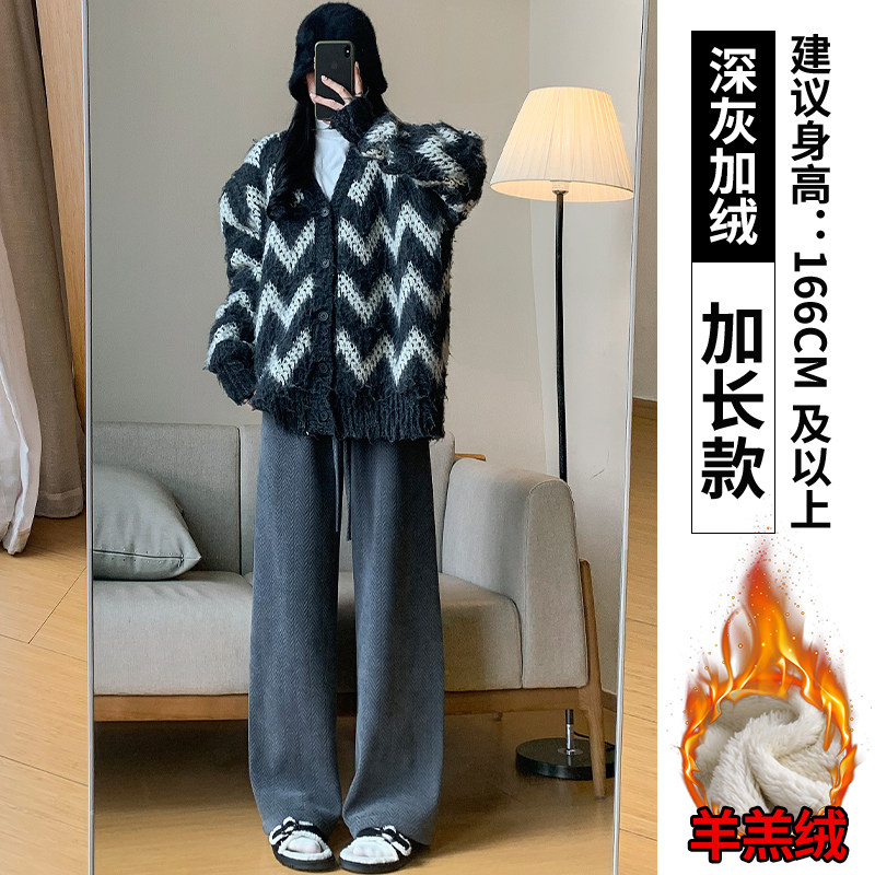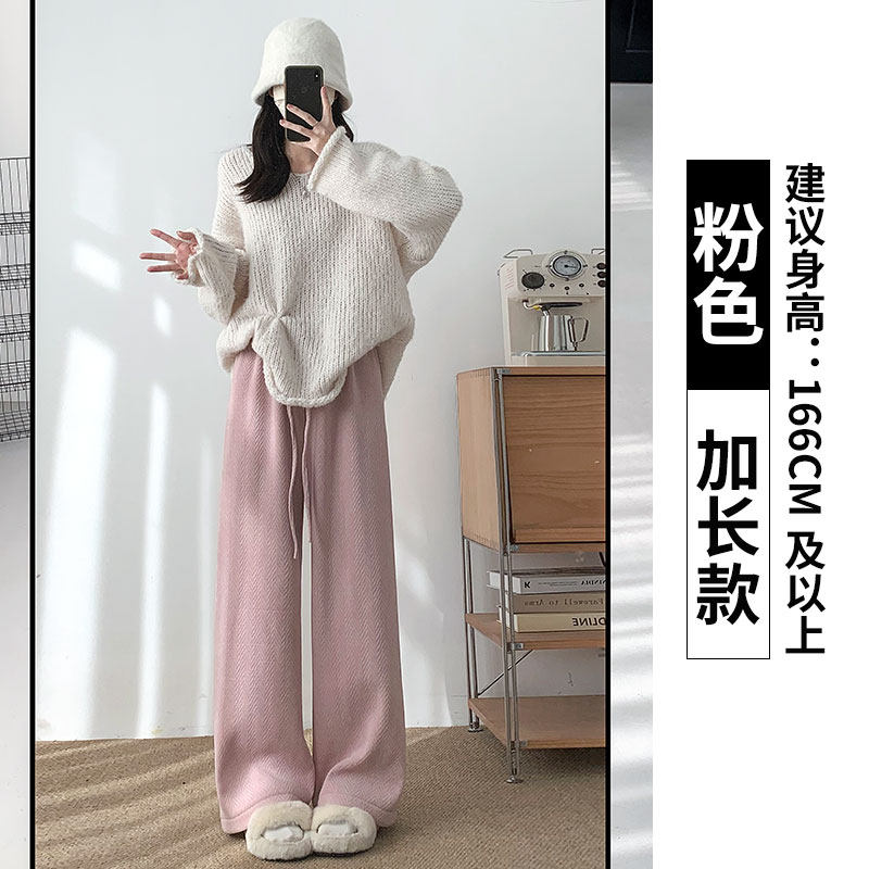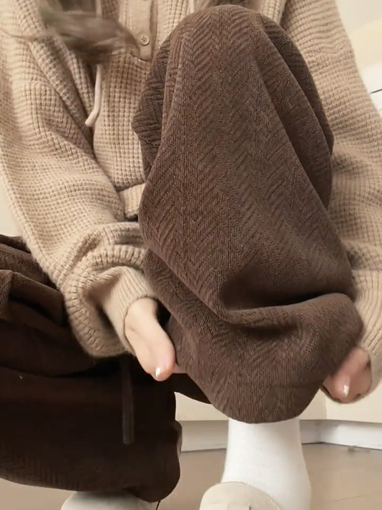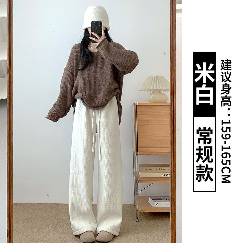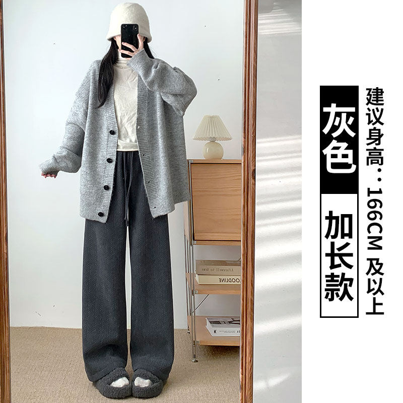 Chenille wide-leg pants women's autumn and winter 2025 new high-waisted drape casual fleece coffee herringbone knitted pants