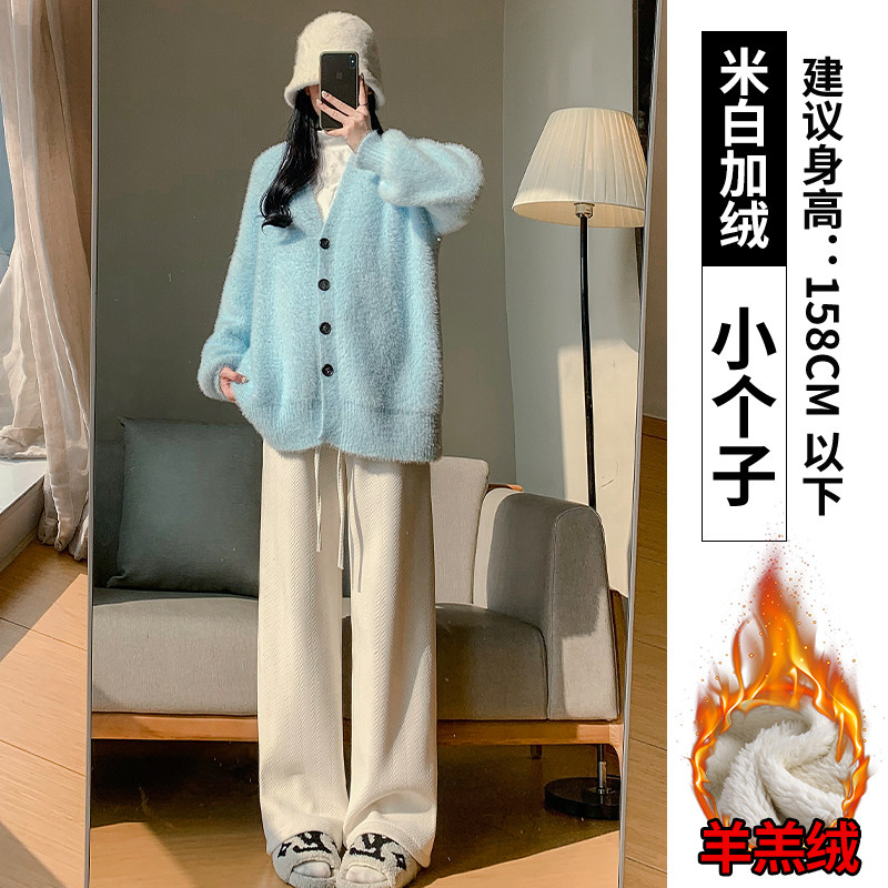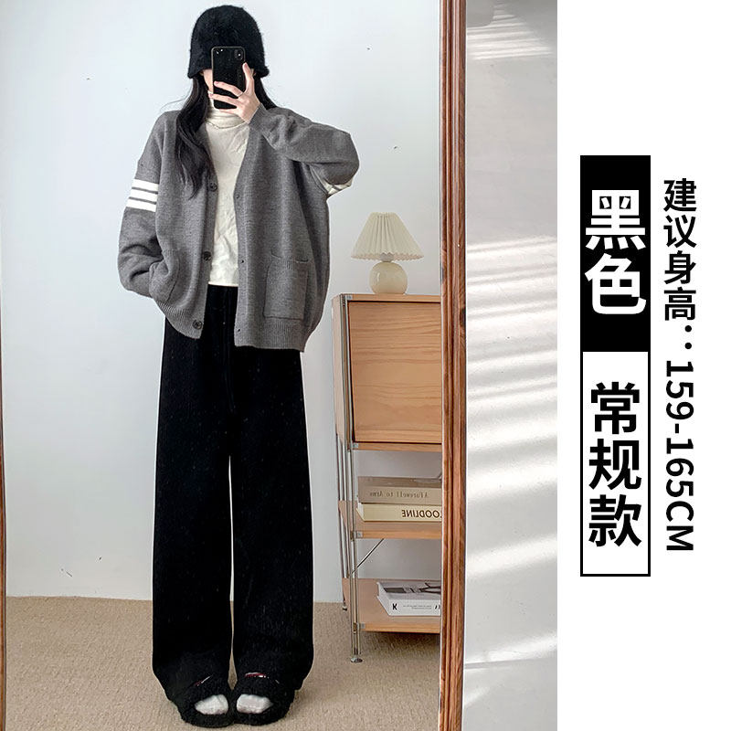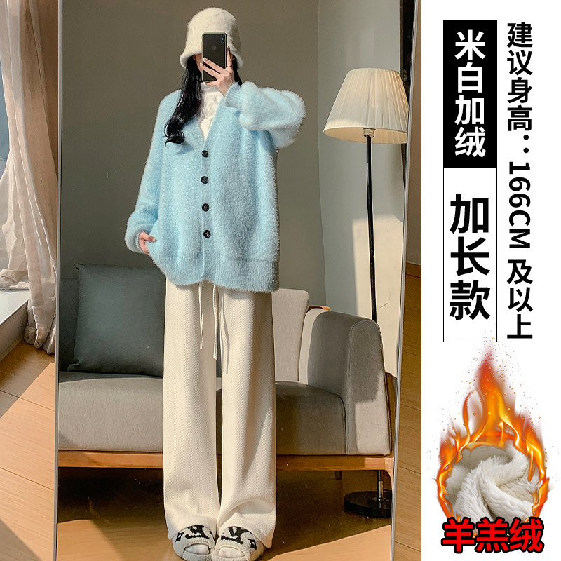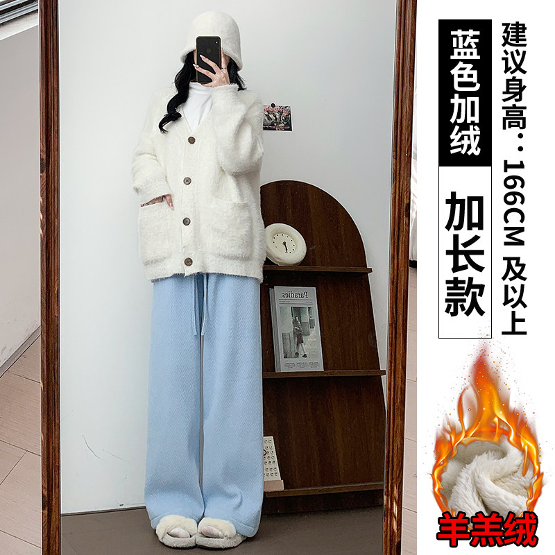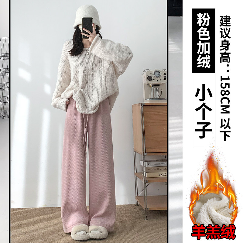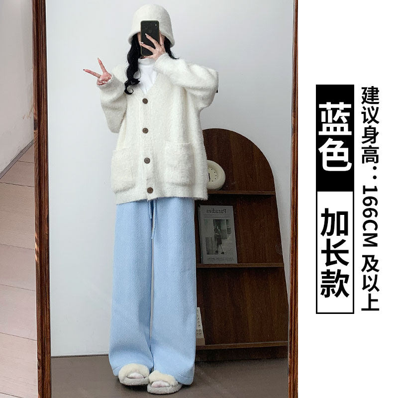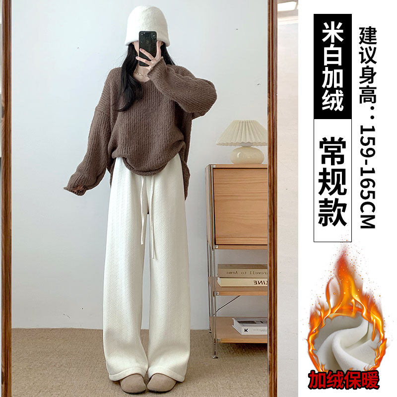 Chenille wide-leg pants women's autumn and winter 2025 new high-waisted drape casual fleece coffee herringbone knitted pants