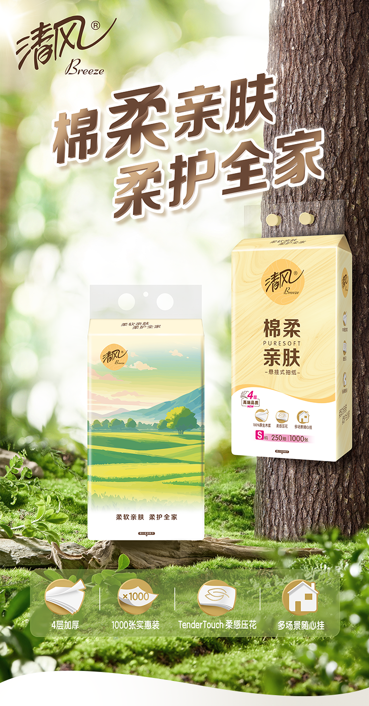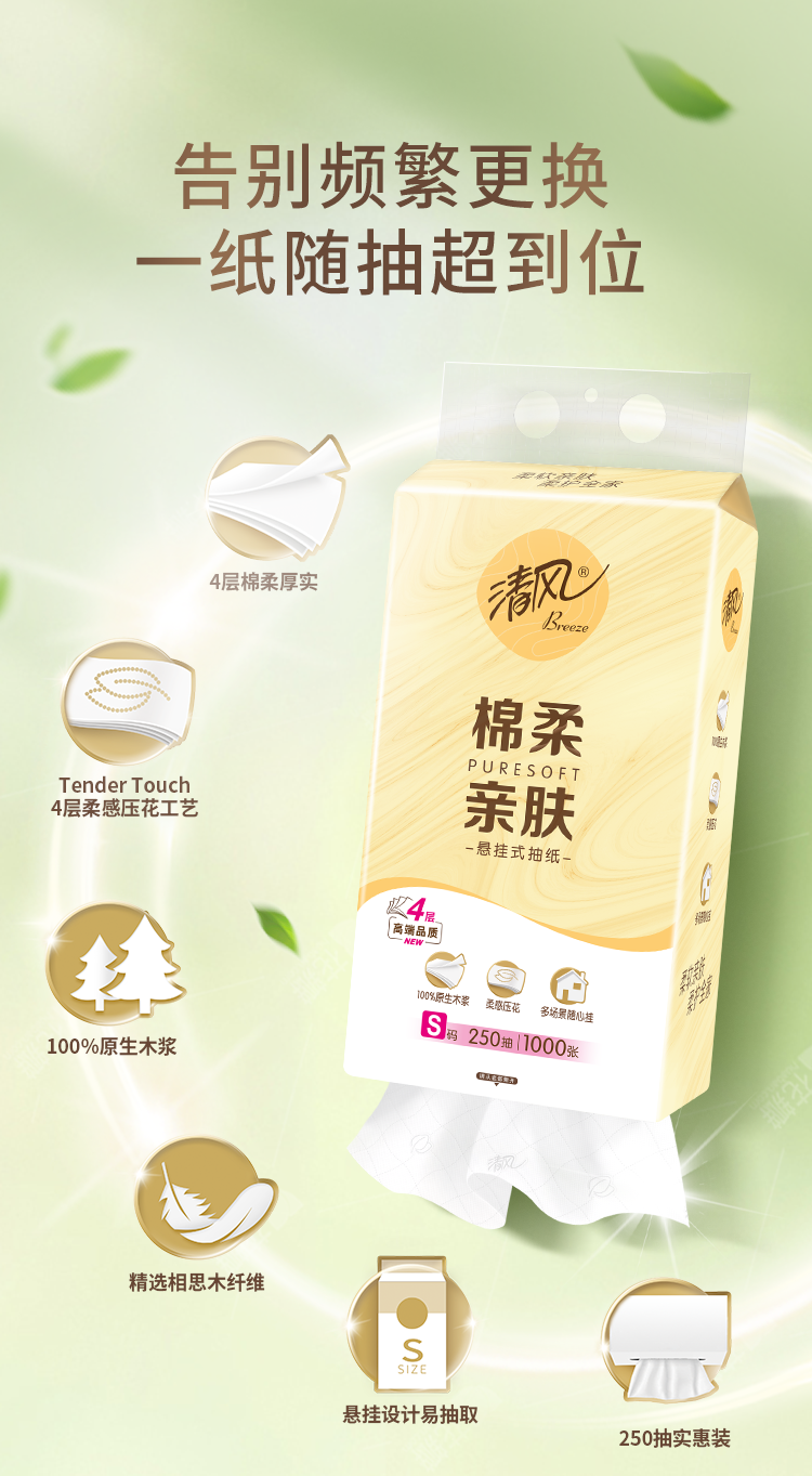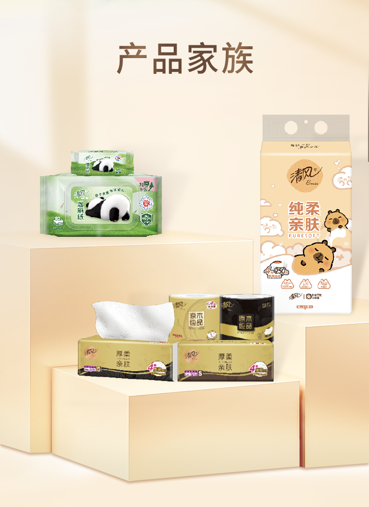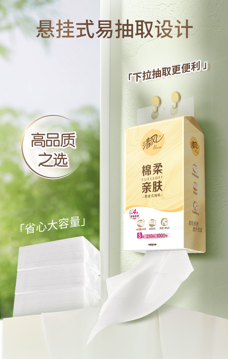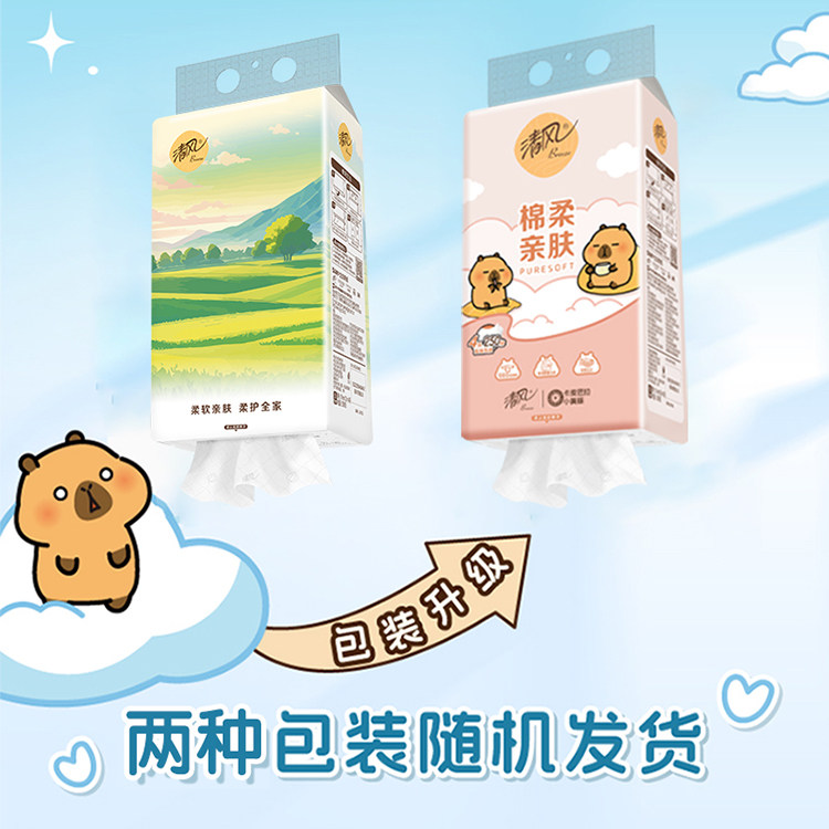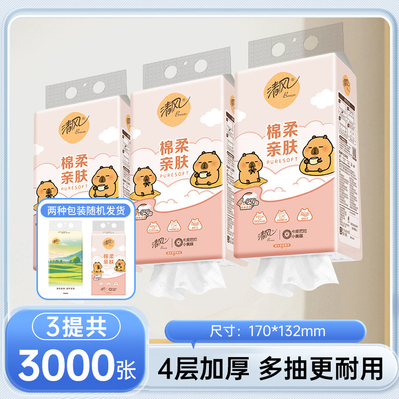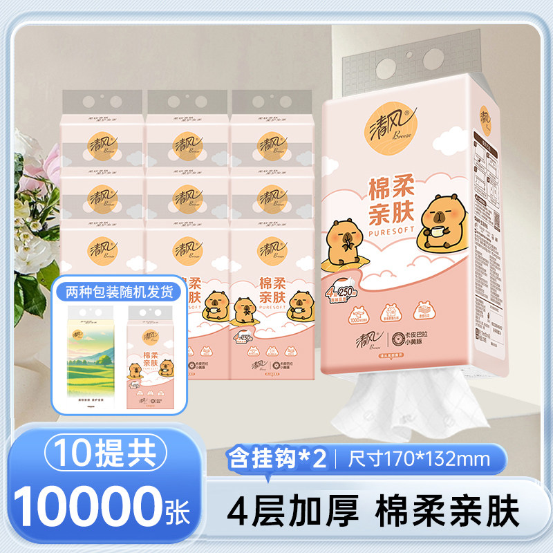 Qingfeng Capybara hanging paper drawing paper 4 layers 250 draw 10 lifting hand towel facial tissue family affordable packaging