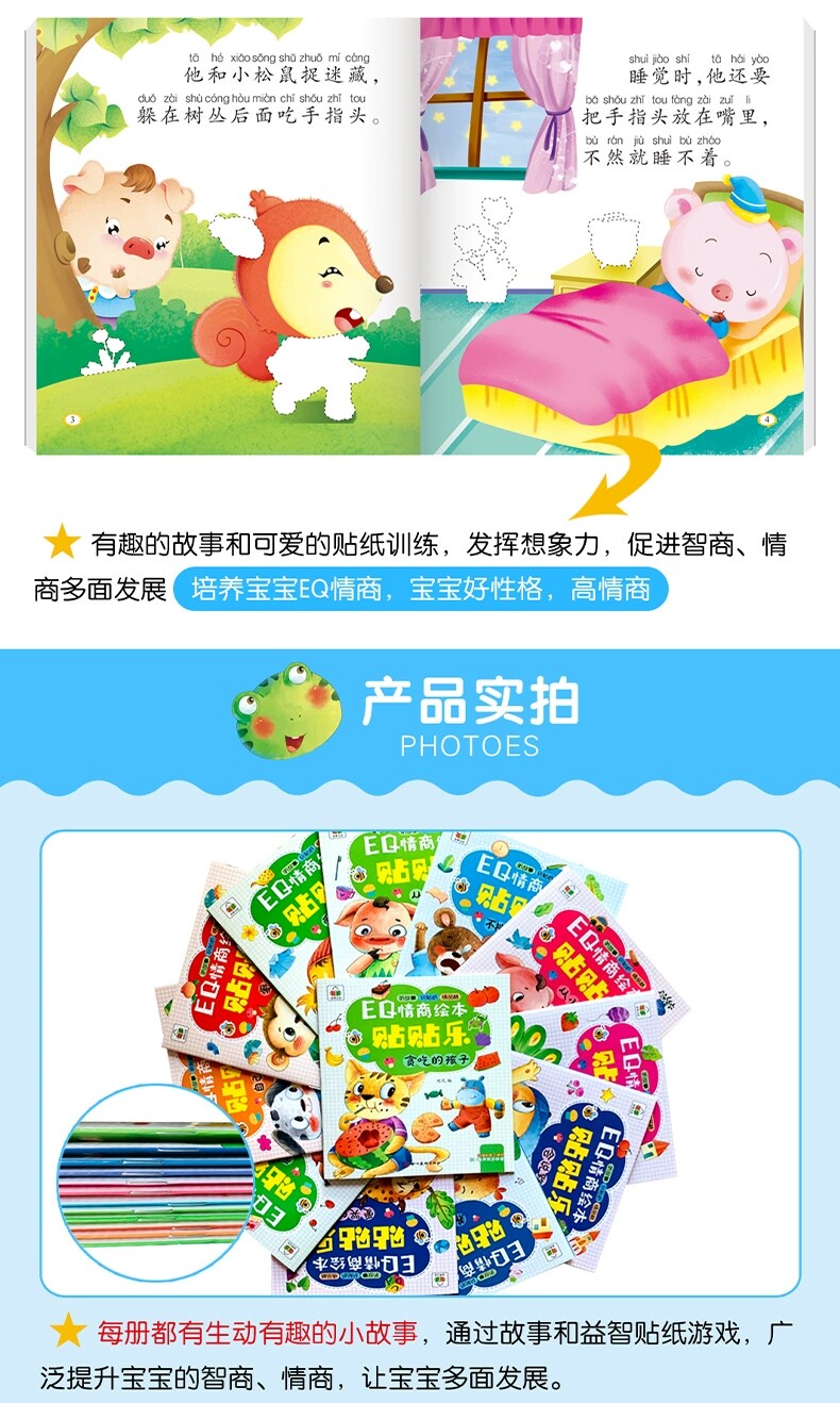 Children's attention 3q training stickers toddlers 1-3-6 years old early education intelligence development sticker book pasting puzzle