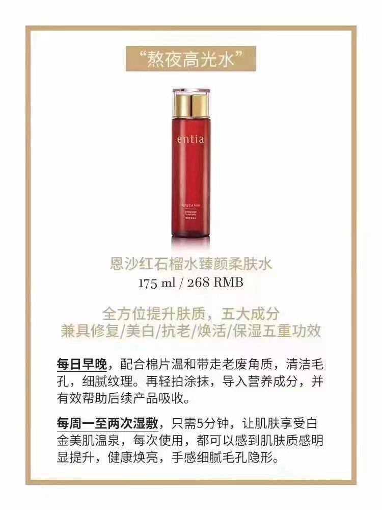 Korean Ensha entia red pomegranate perfect face softening water deep hydration, high moisturizing and firming, anti-wrinkle and light fine lines
