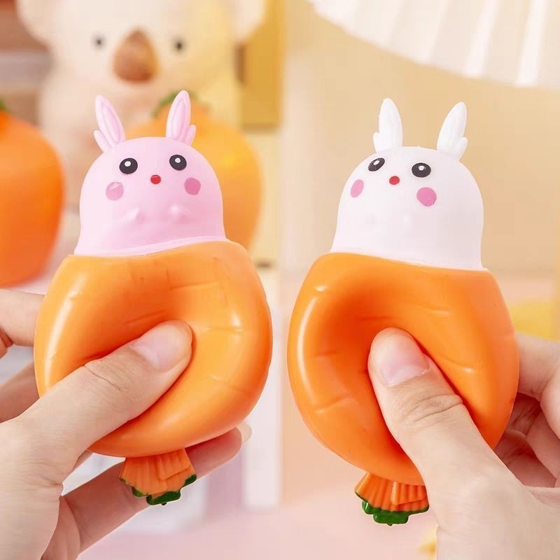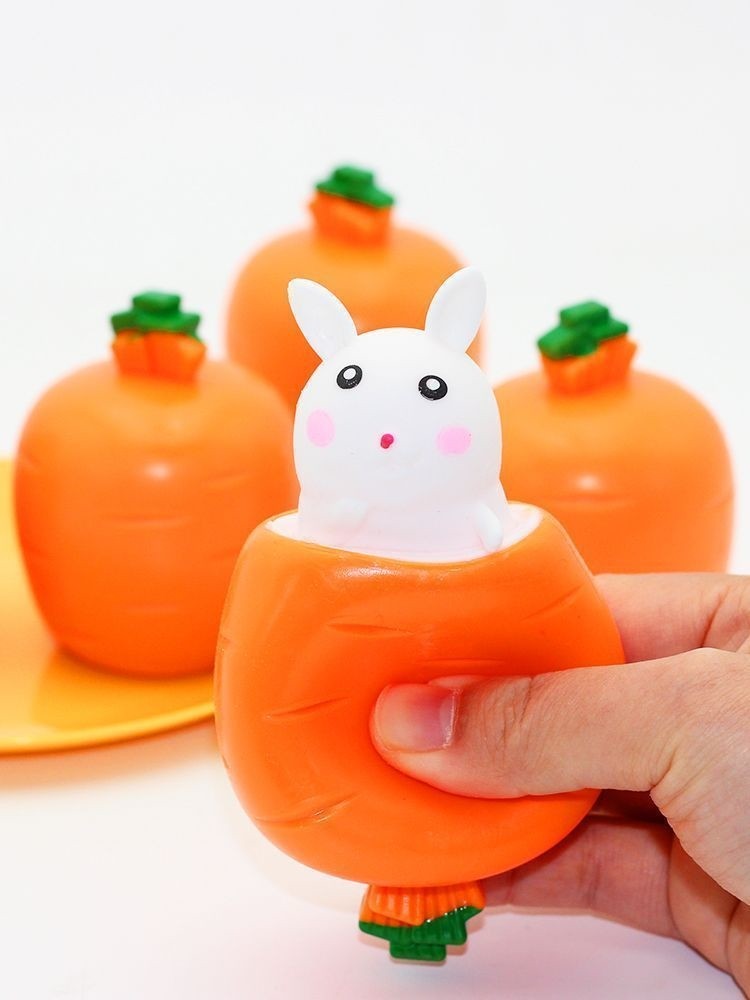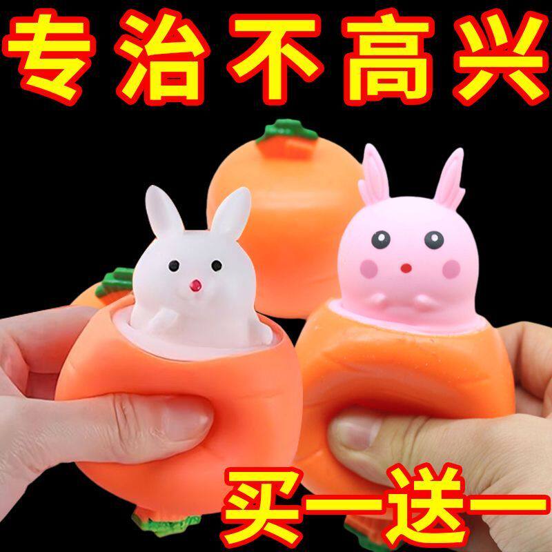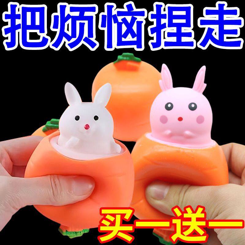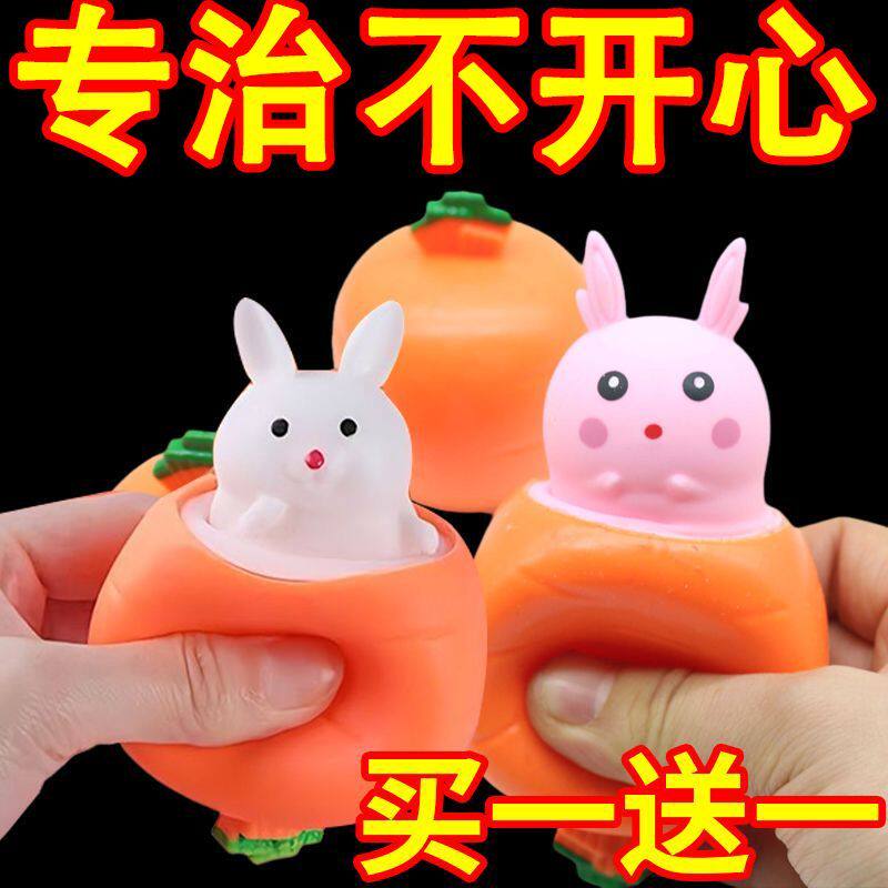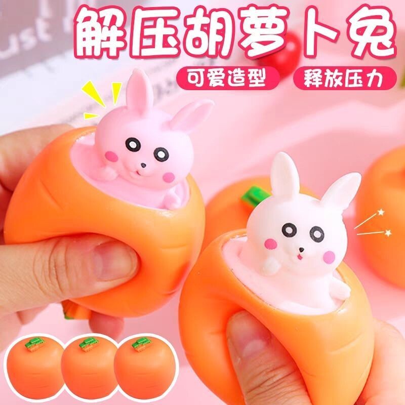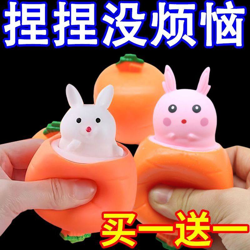 New decompression rabbit telescopic radish cup decompression pinch happy boy children's toy toddler simulation fruit and vegetable