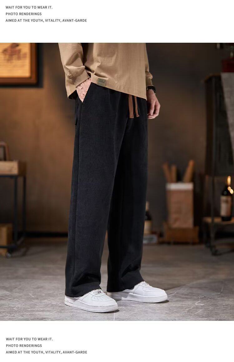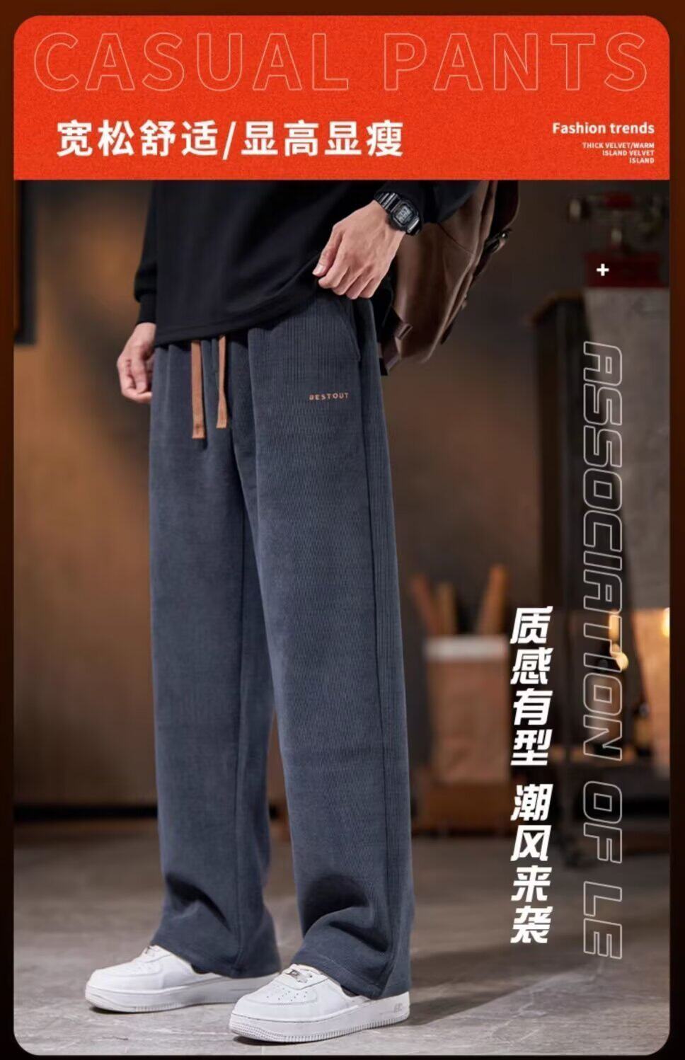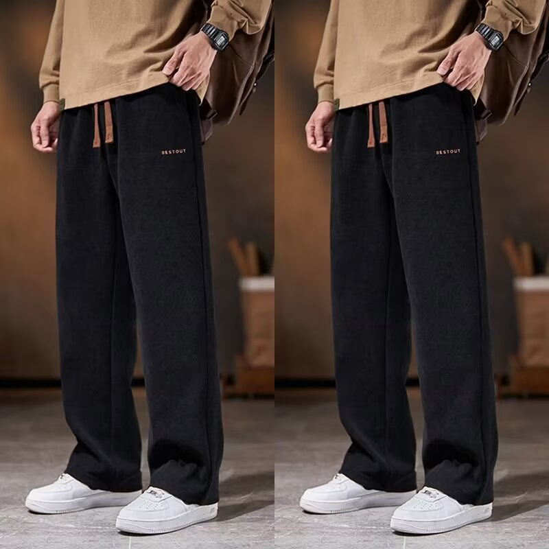 Autumn and winter fleece chenille slacks men's autumn and winter straight loose warm long pants youth elastic waist