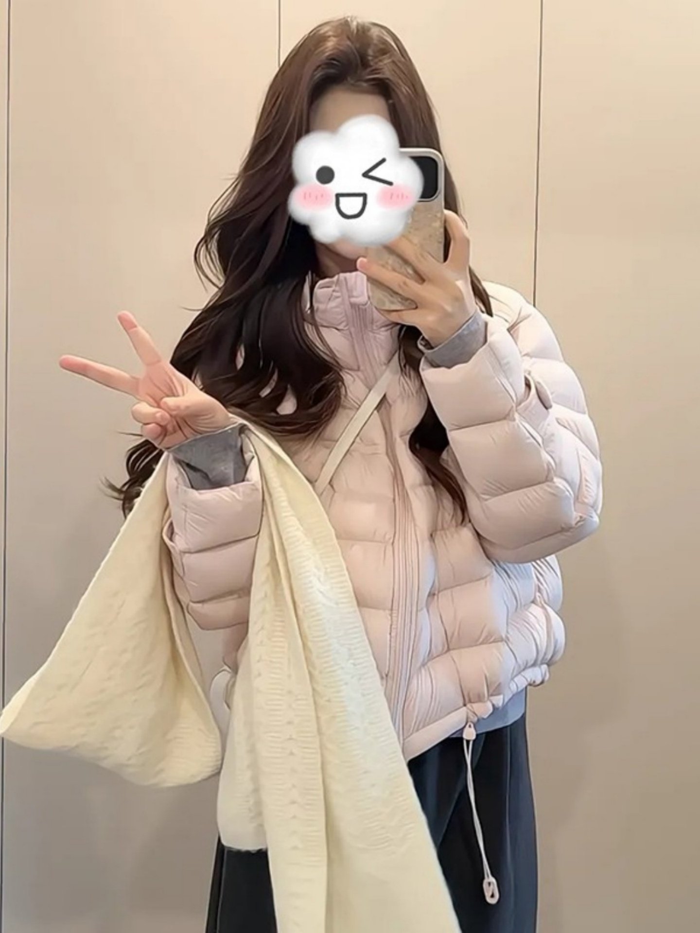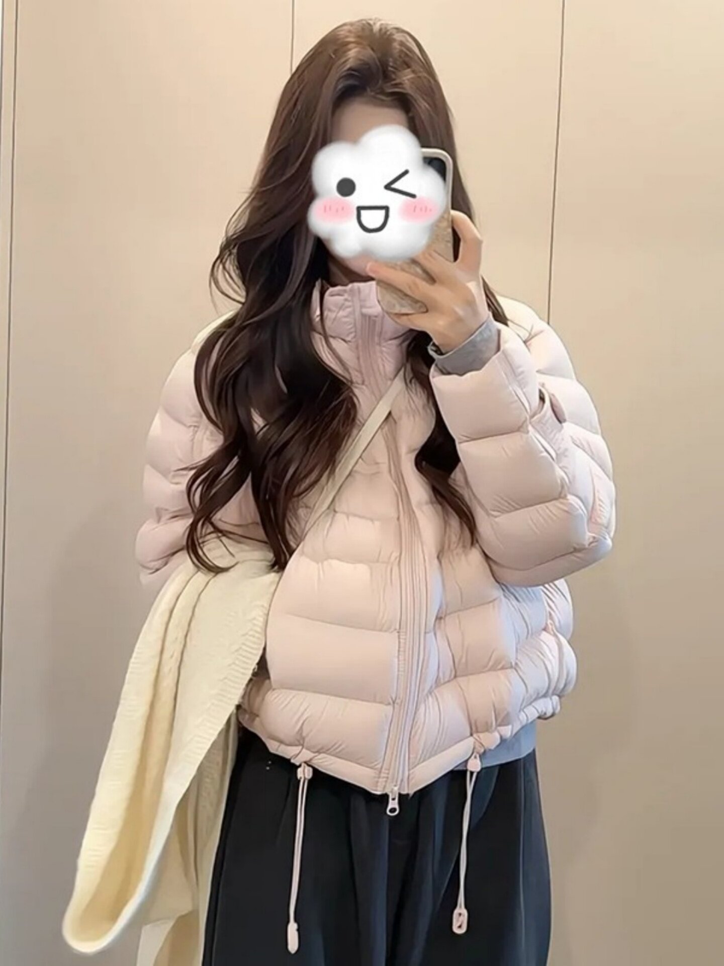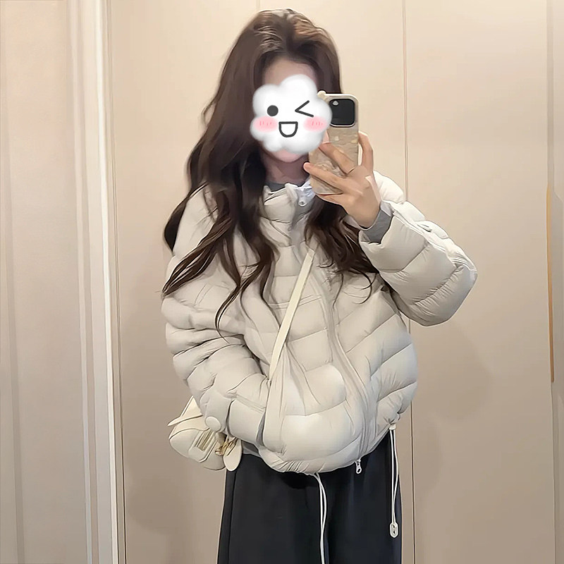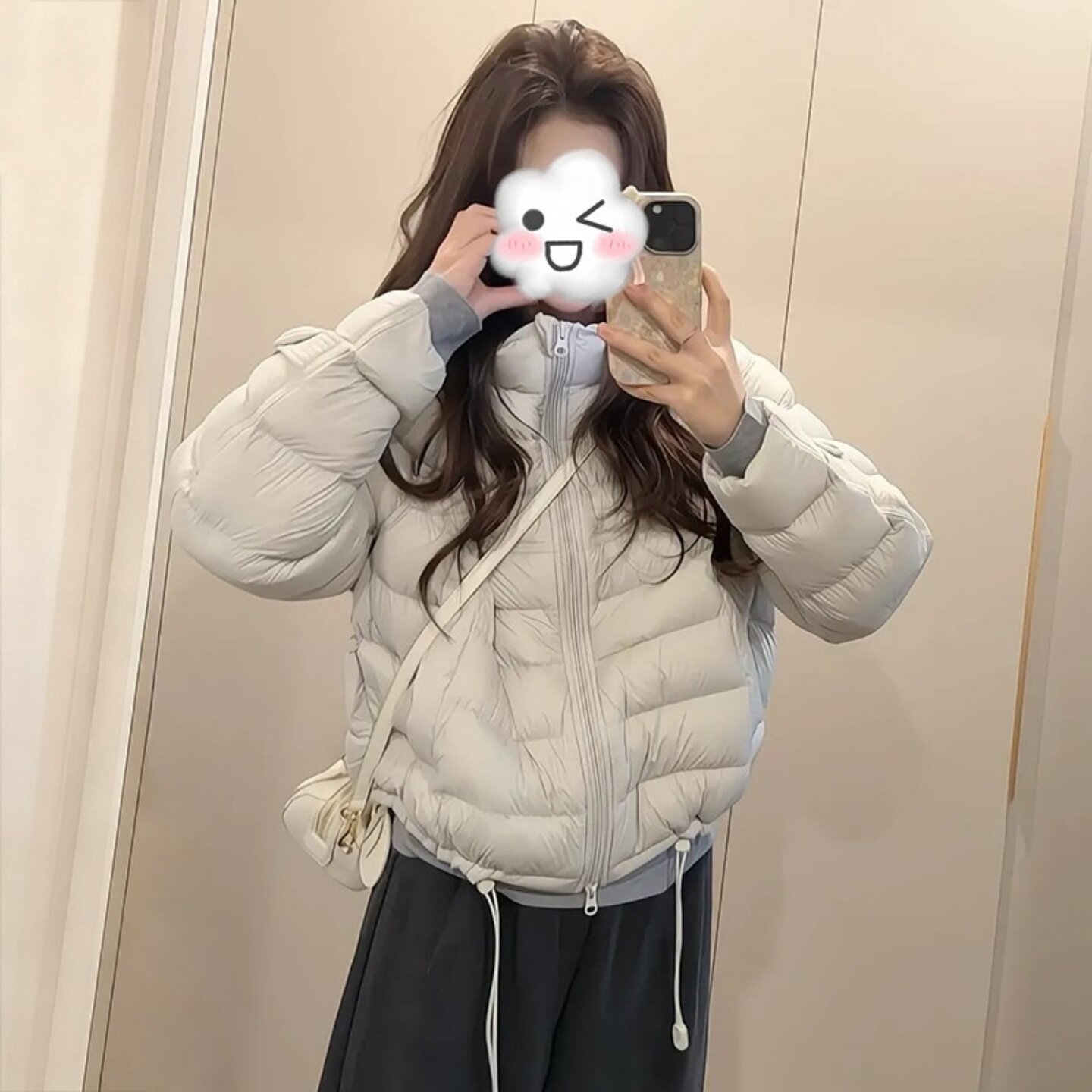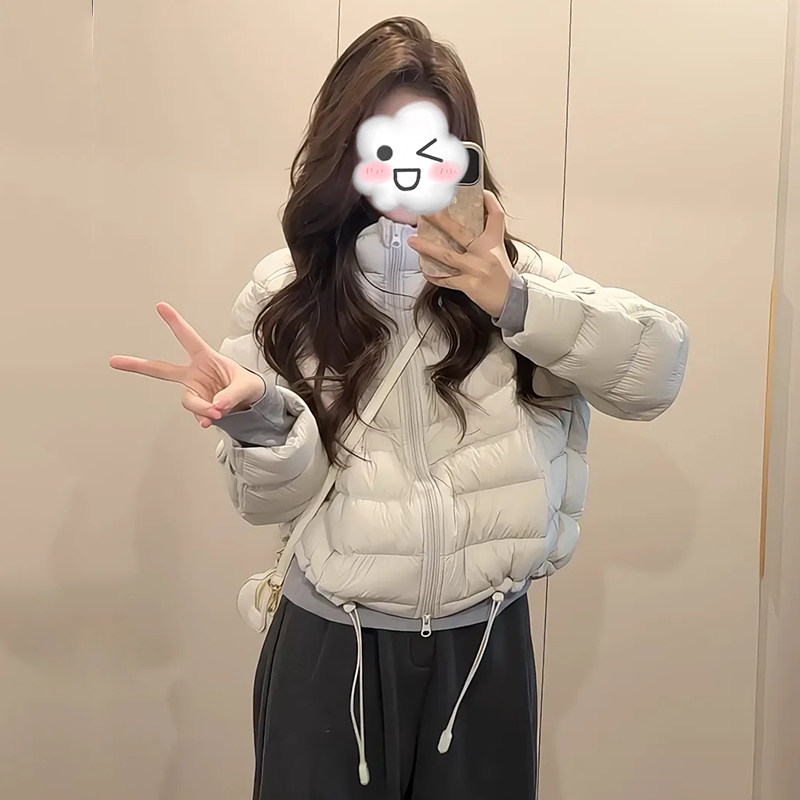 Hem drawstring stand-up collar padded jacket 2025 winter plus size women's fat mm loose giant slim warm bread jacket