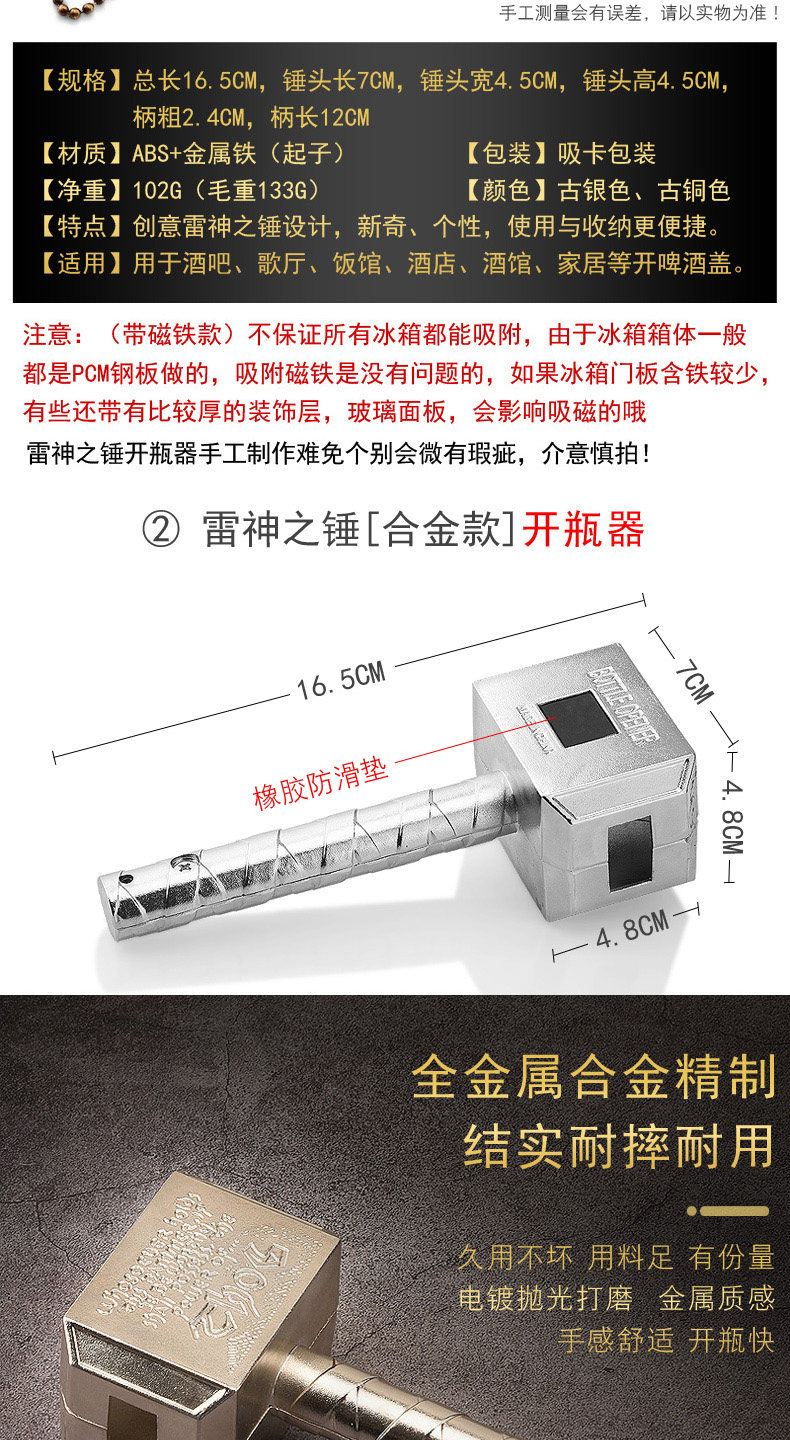 Creative Quake magnetic beer bottle opener retro hammer soda bottle opener starter fun opener